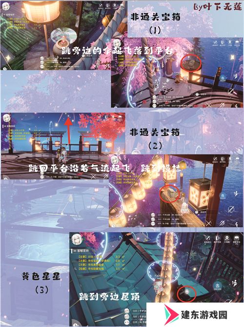 点击查看本篇为大家分享的是开放空间的樱花季限时活动落樱夜桥关卡事件全收集,共有7个黄色星星、6个非首领宝箱、3个小灯笼和隐藏宝箱。