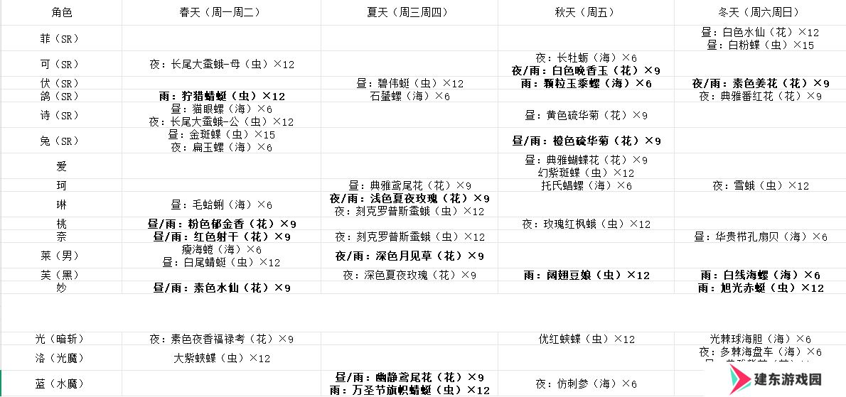 本篇为大家分享的是开放空间的各种采集材料获取时间,游戏里有各种采集材料,总来就是蝴蝶、蛾子、花卉、海产等,这些材料有不同的获取时间限制。开放空间采集材料表